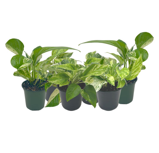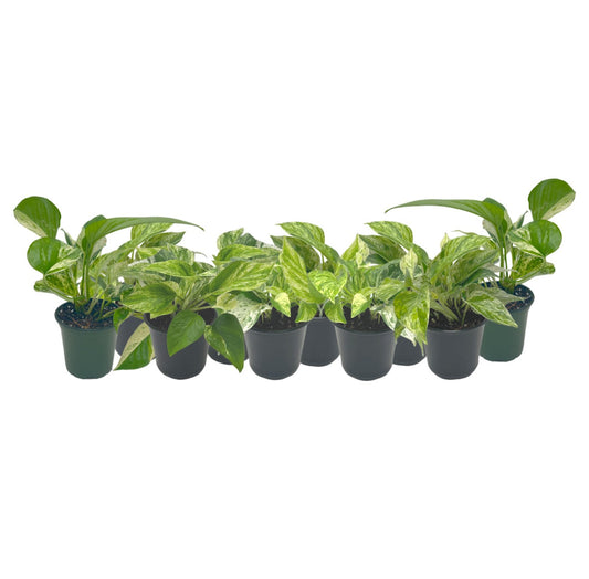 6-PK Live Marble Queen Pothos, Epipremnum aureum, Air Purifying Indoor Plant, Low Light Houseplant, Easy Care Plant, 4-inch Pot(s)