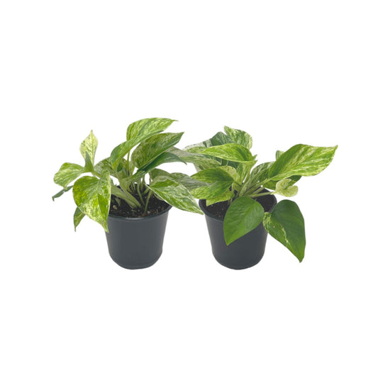 2-PK Live Marble Queen Pothos, Epipremnum aureum, Air Purifying Indoor Plant, Low Light Houseplant, Easy Care Plant, 4-inch Pot(s)