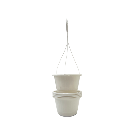 6-PK of 4.5-inch White Hanging Baskets by Koba with Detatchable Bottom Saucer – Lightweight, Stackable Planters for Indoor & Outdoor Plants (6 Count)